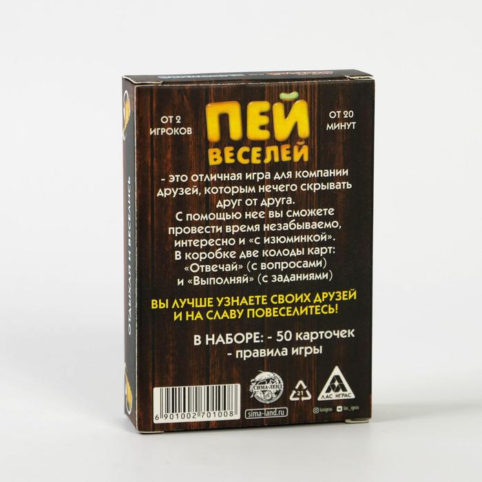 Купить игра для компании "пей веселей" 50 карт от 180 руб. с доставкой до пункта выдачи в Кургане. Интернет магазин ДекаМаркет. Оплата при получении.